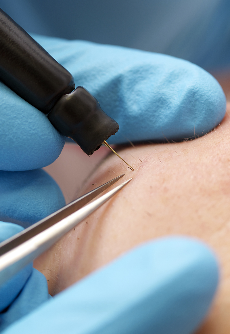Elektrisch epileren is een methode voor permanente haarverwijdering waarbij elk haartje individueel wordt uitgeschakeld via een dun naaldje en warmte. Deze methode is perfect voor kleine zones en hardnekkige haargroei die niet reageert op laser of wax. Zeer effectief bij bijvoorbeeld kin, bovenlip of losse witte of grijze haren. Het resultaat is definitieve vermindering van ongewenste haargroei.